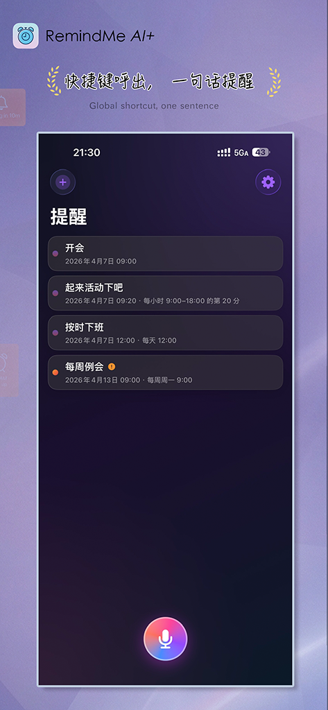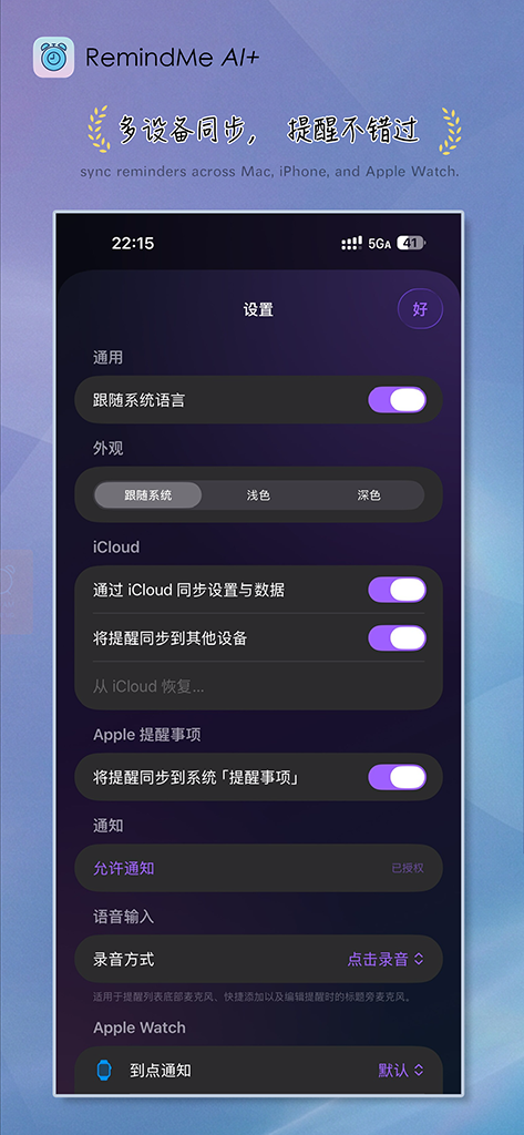 Mac: Menu bar and global Quick Add. iPhone: Dictate or type. Premium: Optional AI parsing and iCloud across Mac, iPhone, and Watch—one purchase.