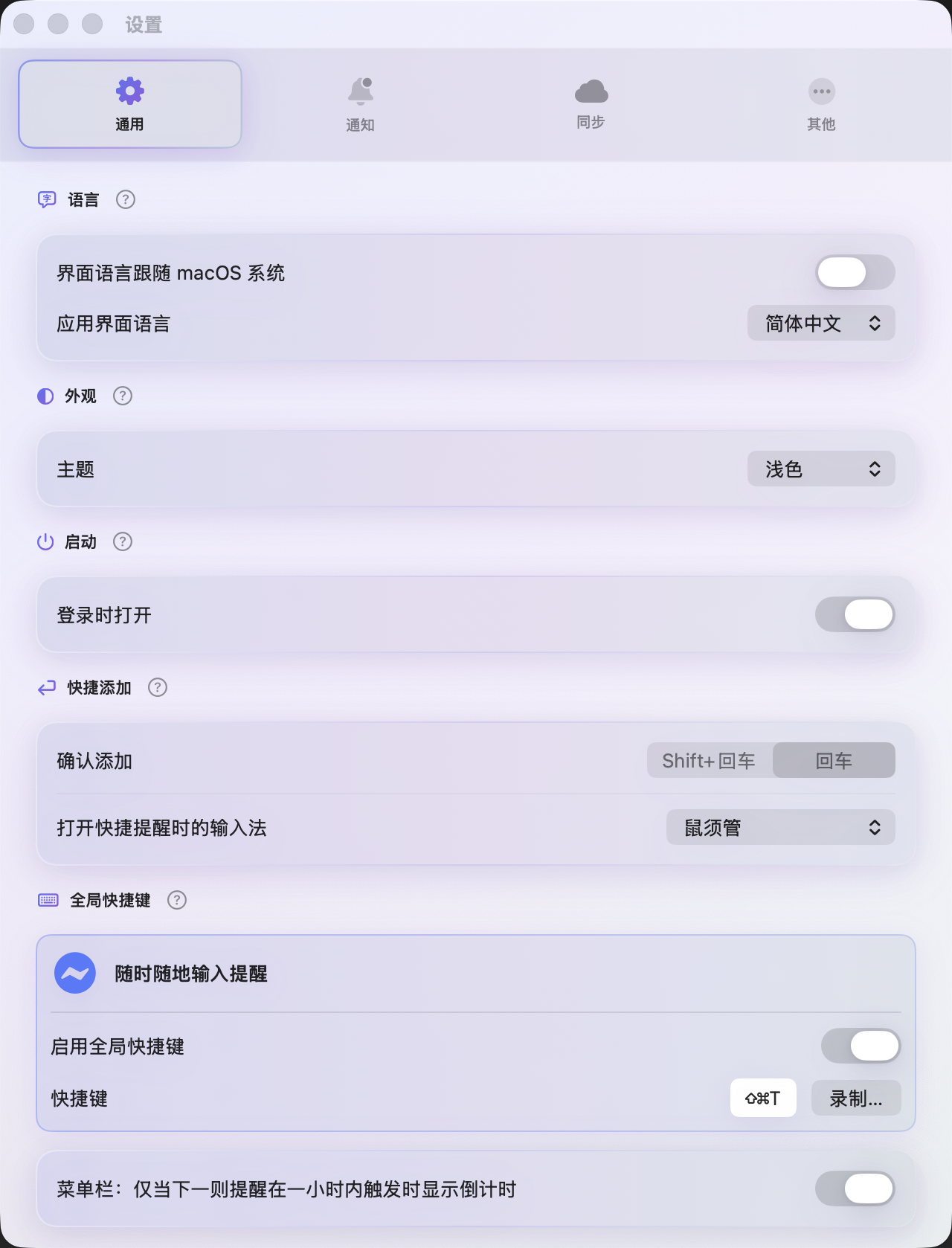 Set a global hotkey to open Quick Add from any app (allow Input Monitoring in System Settings). Capture the thought before it slips away—no hunting for windows.